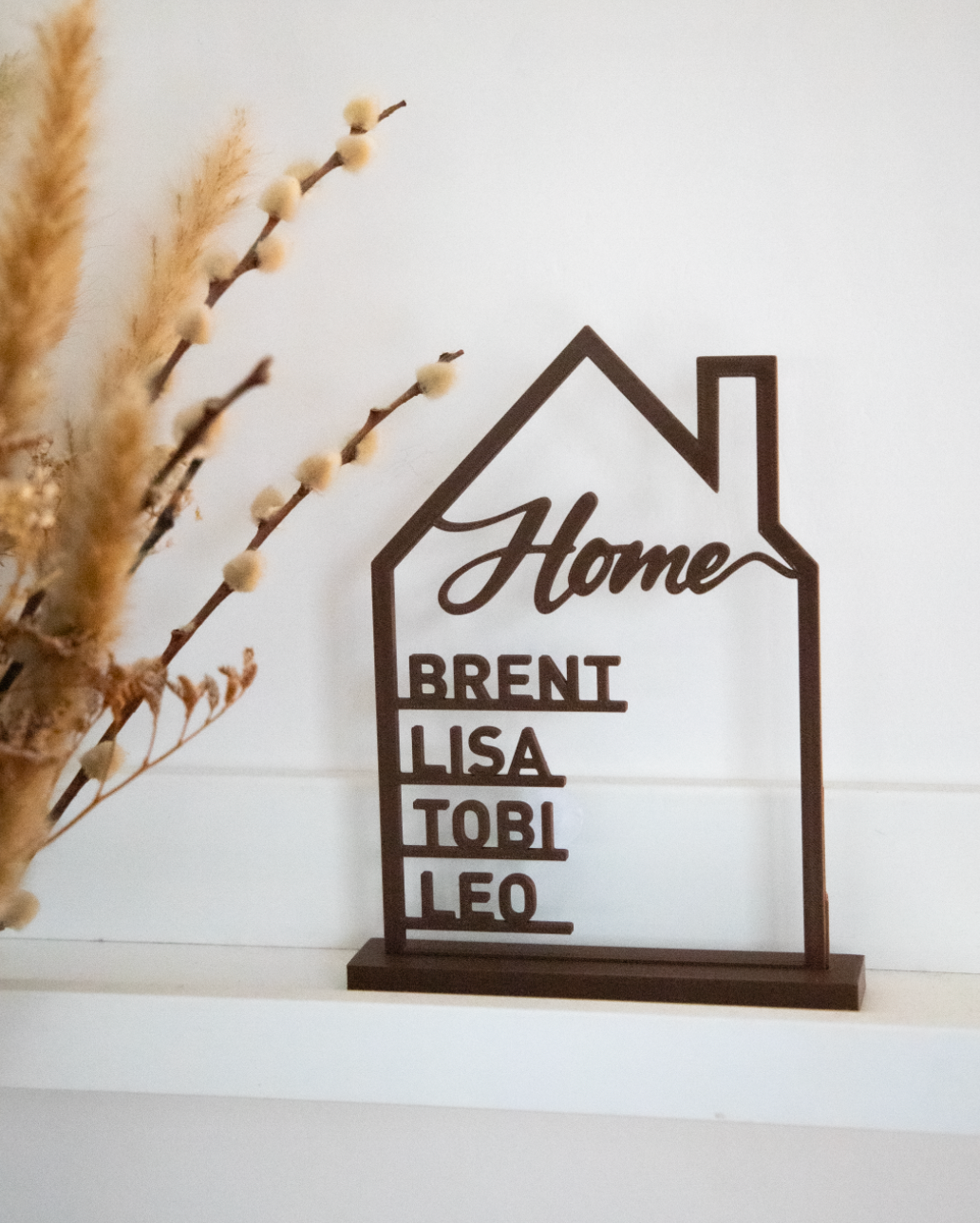 🏠 Gepersonaliseerde 3D Print – “Home” met Namen