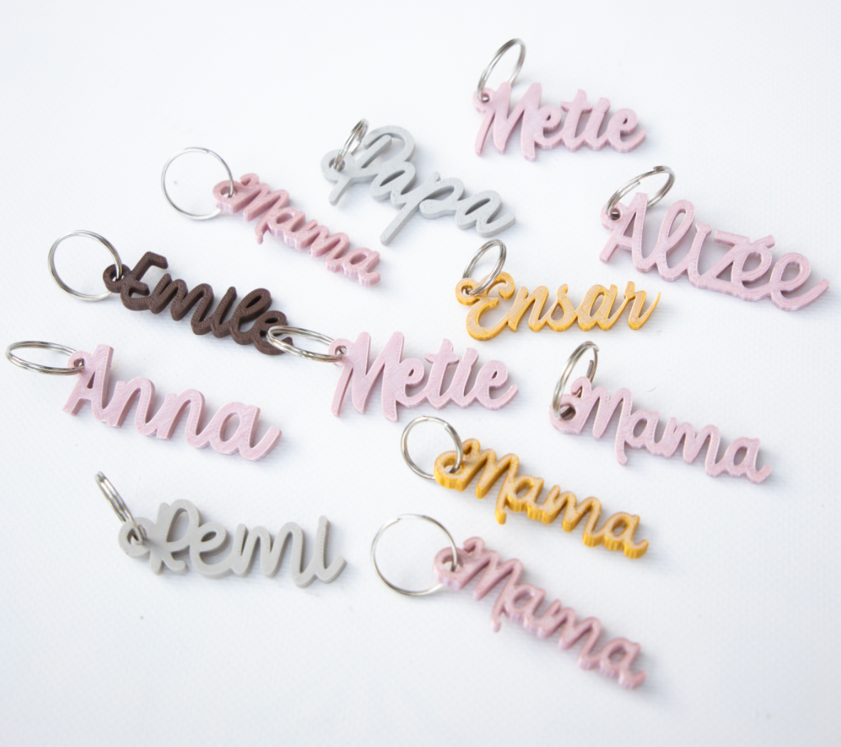 - Persoonlijke 3D-geprinte naamsleutelhanger
