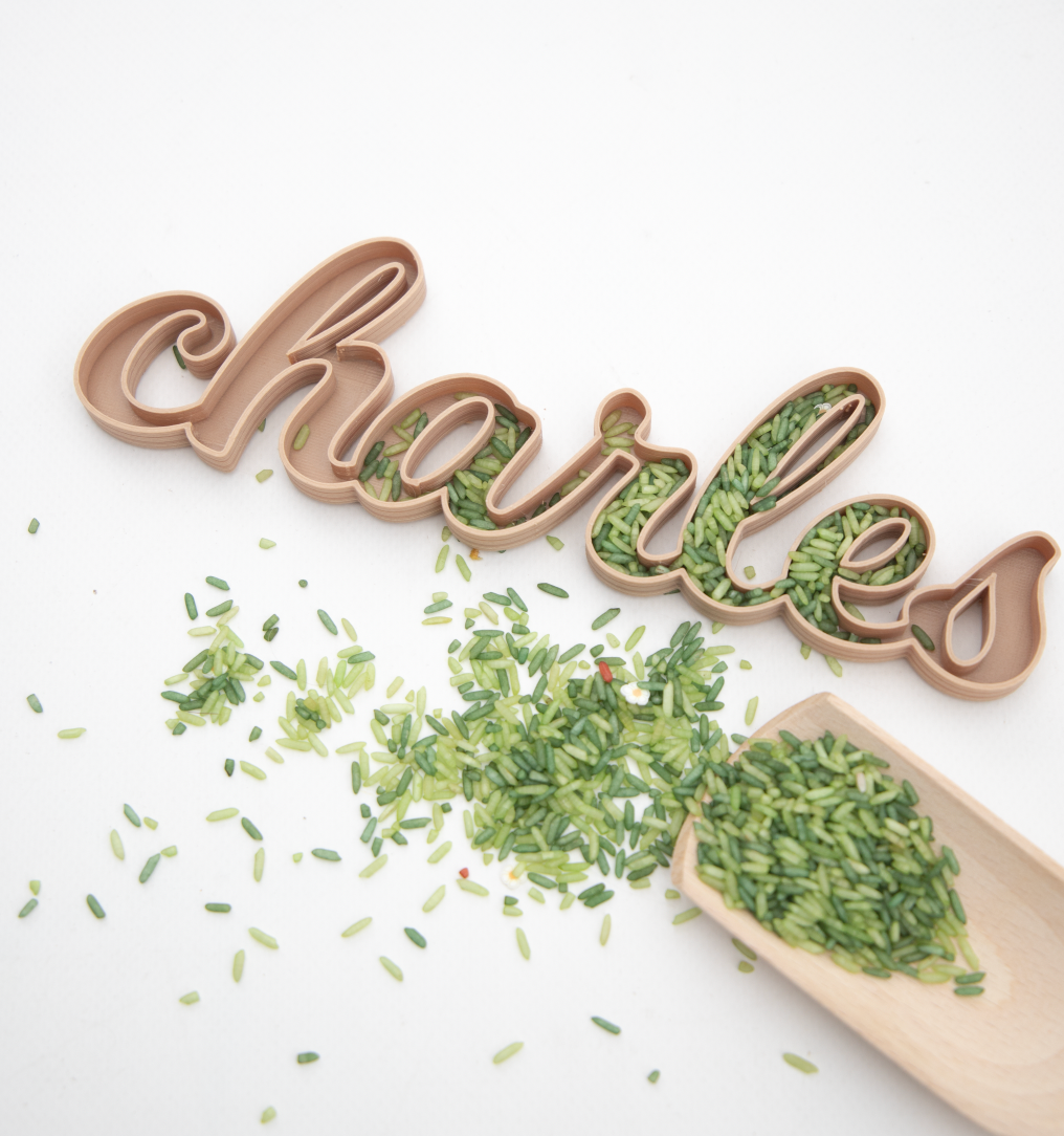 Maak speel- én leerervaringen extra bijzonder met deze unieke, op maat gemaakte vulvorm in de vorm van de naam van jouw kindje! Deze prachtige vorm is perfect om te gebruiken met sensorisch speelmateriaal zoals speelrijst, kinetisch zand, pasta, speelparels en meer.