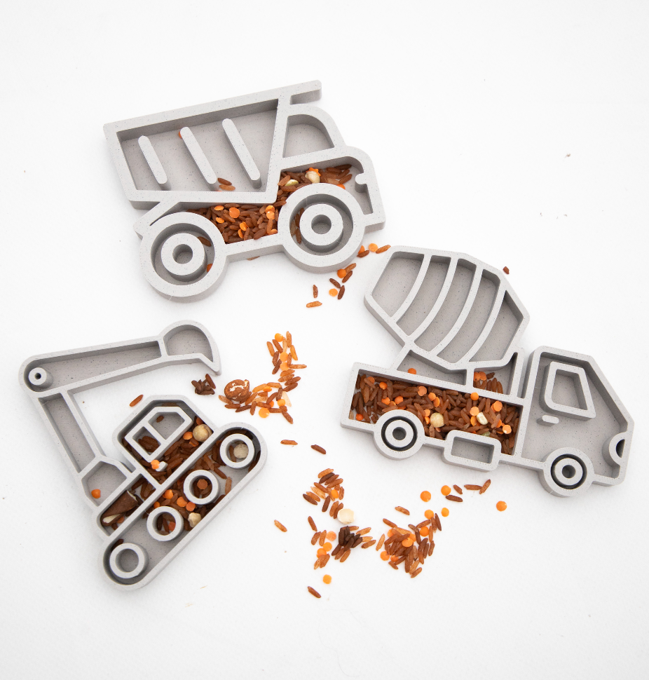 Vrolijke vulvormen in de shapes van bouwvoertuigen. Perfect voor sensorisch spel, knutselen of als feestelijke decoratie. Gemaakt van stevig, kindvriendelijk materiaal en ideaal om te vullen met rijst, kralen of ander speelmateriaal.