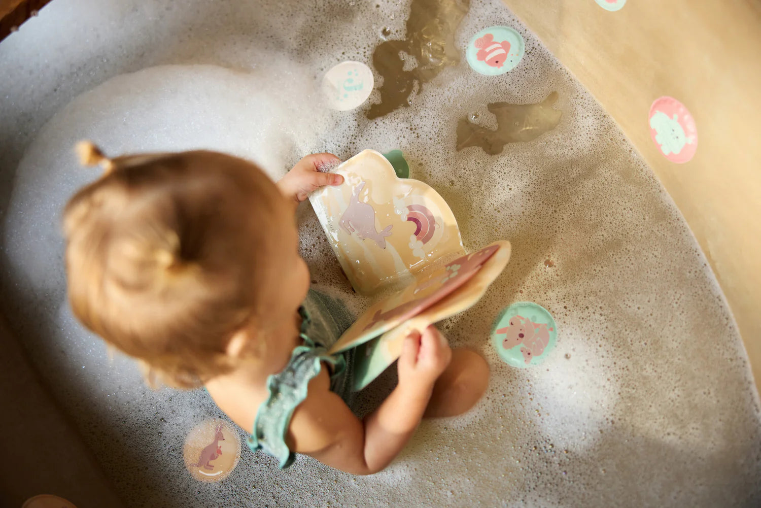 Eindeloos speelplezier in bad met dit magische boekje! De witte pagina’s lijken eerst leeg, maar zodra ze nat worden, verschijnen er vrolijke kleuren en vormen. Het boekje blijft drijven en is gemaakt van zacht materiaal dat fijn in kleine handjes ligt. Zo ontdekt je kindje telkens iets nieuws, zowel in bad als onder de douche.