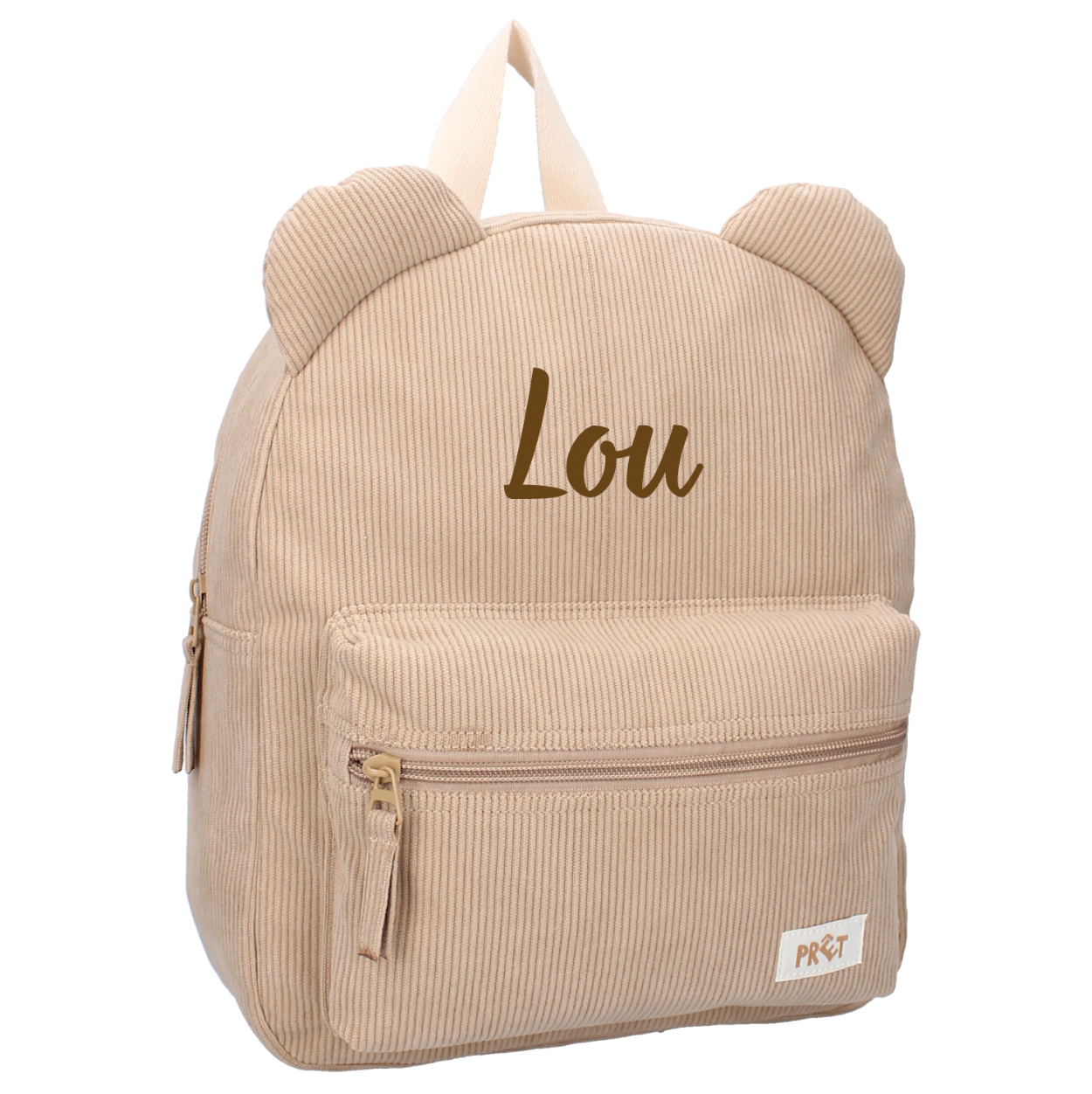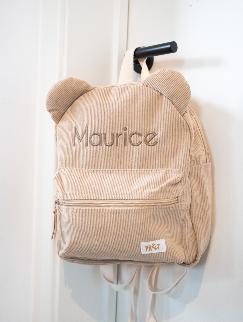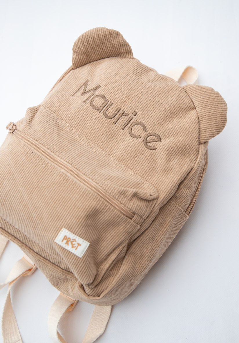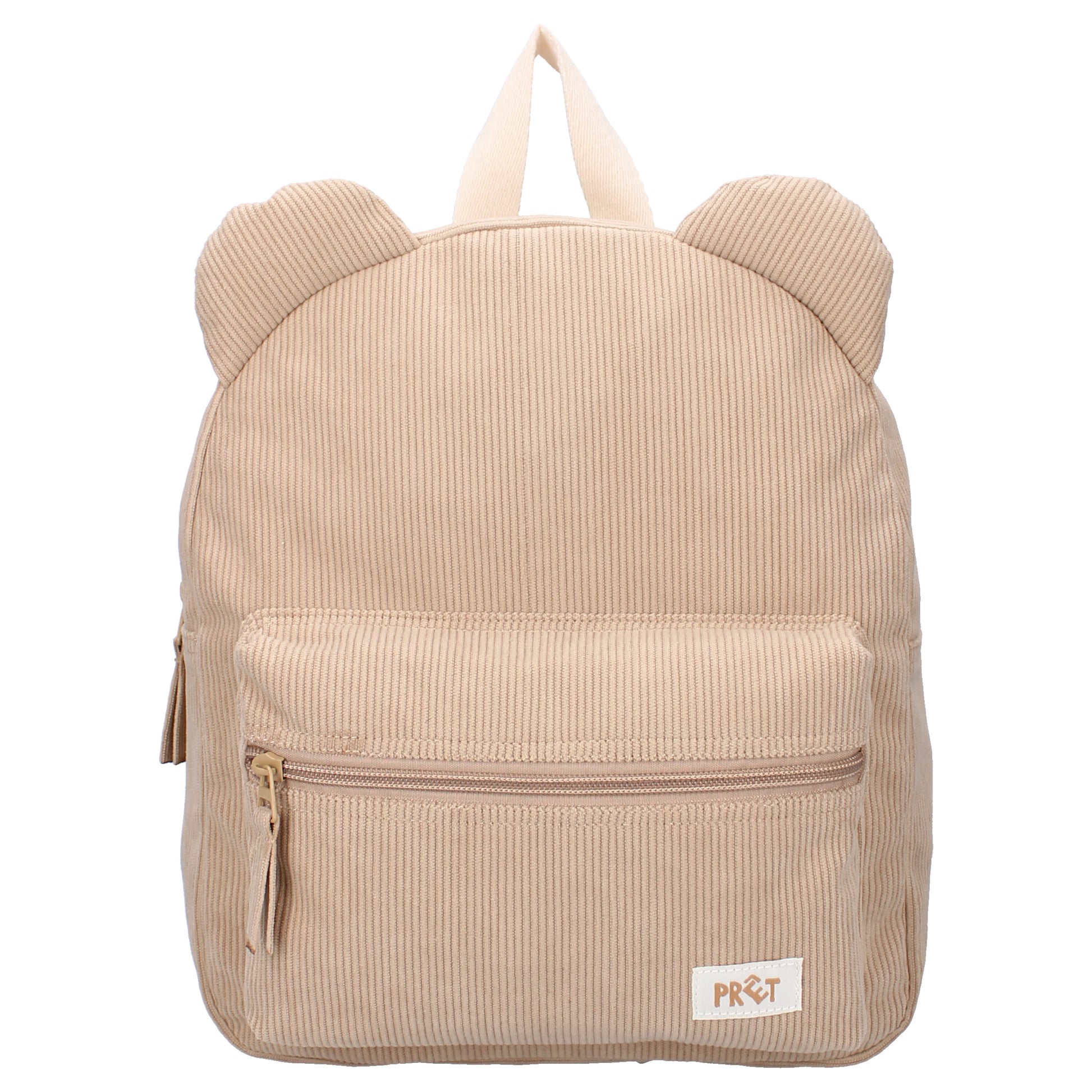 Deze trendy rugzak is een echte must-have! De beige tas is gemaakt van zachte ribstof en biedt voldoende ruimte voor alle dagelijkse spulletjes. Het hoofdvak is afgewerkt met schattige berenoortjes en sluit, net als het voorvak, met een stevige ritssluiting. Aan de bovenkant zit een handige lus om de tas makkelijk op te hangen. De verstelbare schouderbanden zorgen ervoor dat de rugzak comfortabel zit en perfect past bij ieder kind.