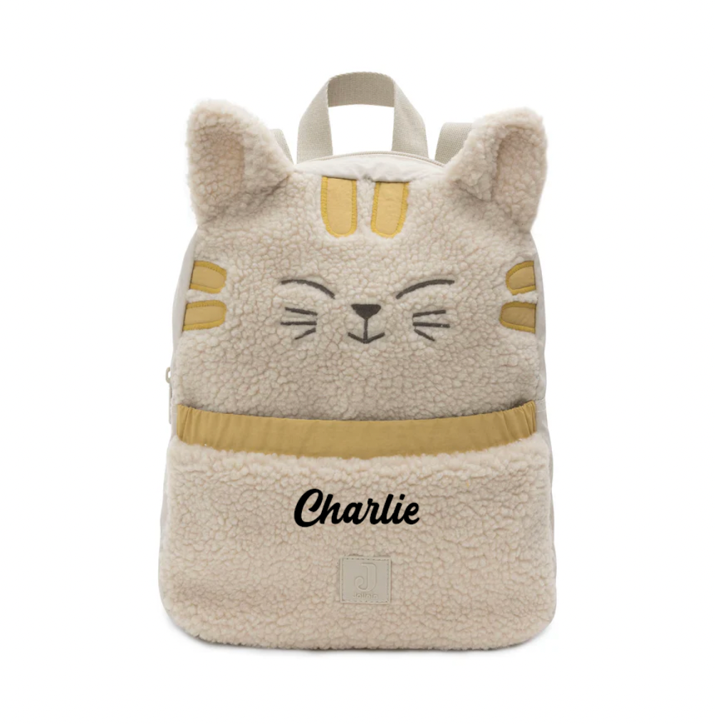 Dit schattige rugtasje Charlie Cat heeft een sand kleurtje met uitstekende oren en Queen Bee kleurige accenten. De tas heeft een rits aan de voorkant en een zachte teddy stof vooraan, met een stevige polyester mix aan de zijkanten. Binnenin zit een steekvak met velcro voor kleine spulletjes. De gespjes zorgen ervoor dat de tas goed blijft zitten. Ook de achterkant is van zachte teddy, ideaal voor naar de opvang of andere avonturen!