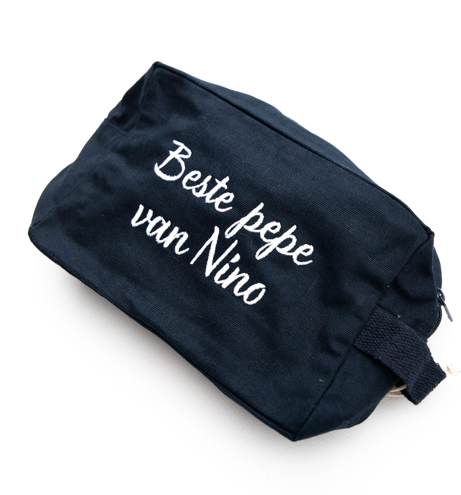 100% biokatoen. Toilettas met ritssluiting.